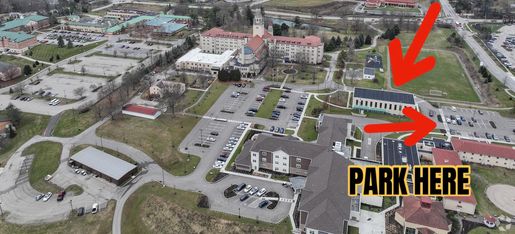 2. You will drive along the Motherhouse and see signs for the Center for Lifelong Learning. Turn left at the next stop sign you see. You will now be driving behind the Motherhouse.
